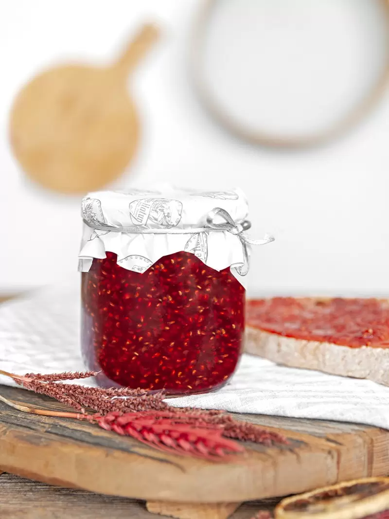 Şerife Hatun Ahududu Reçeli 400 gr cam kavanozda sunulmaktadır.