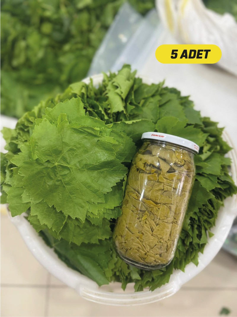 Nisan/Mayıs Dönemi Sultaniye cinsi Çekirdeksiz Üzüm Bağlarının ilk uç yapraklarından toplanır, aynı gün cam kavanozlara Kuru Basım yapılır ve vakumlanır.